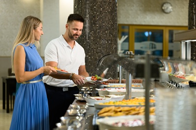 As with breakfast, we offer our guests a wide selection of dinner options to satisfy all tastes. There are two cold buffet counters where you can choose from a variety of delicious starters, salads, and homemade pickles. Our hot dishes include soups, homemade dishes, a continuous presentation of Hungarian and international cuisine, and a rich selection of delicacies. Our desserts are all made in our workshop, and we offer at least 4-5 sweet delicacies a day to round off your meal.