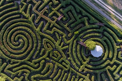 A 3,5 km hosszú sövénylabirintus a világ harmadik legnagyobbja, Csodaszarvas alakját formázva, ami még műholdakról is látható.
